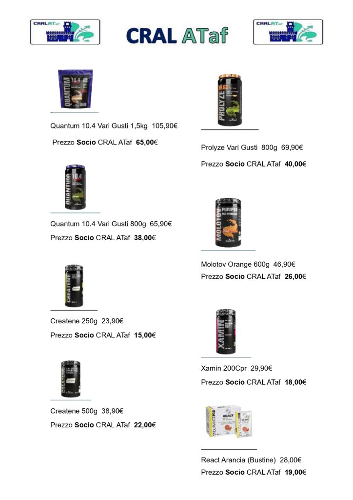 Presso il CRAL ATaf è possibile acquistare gli integratori Anderson a prezzi scontatissimi.